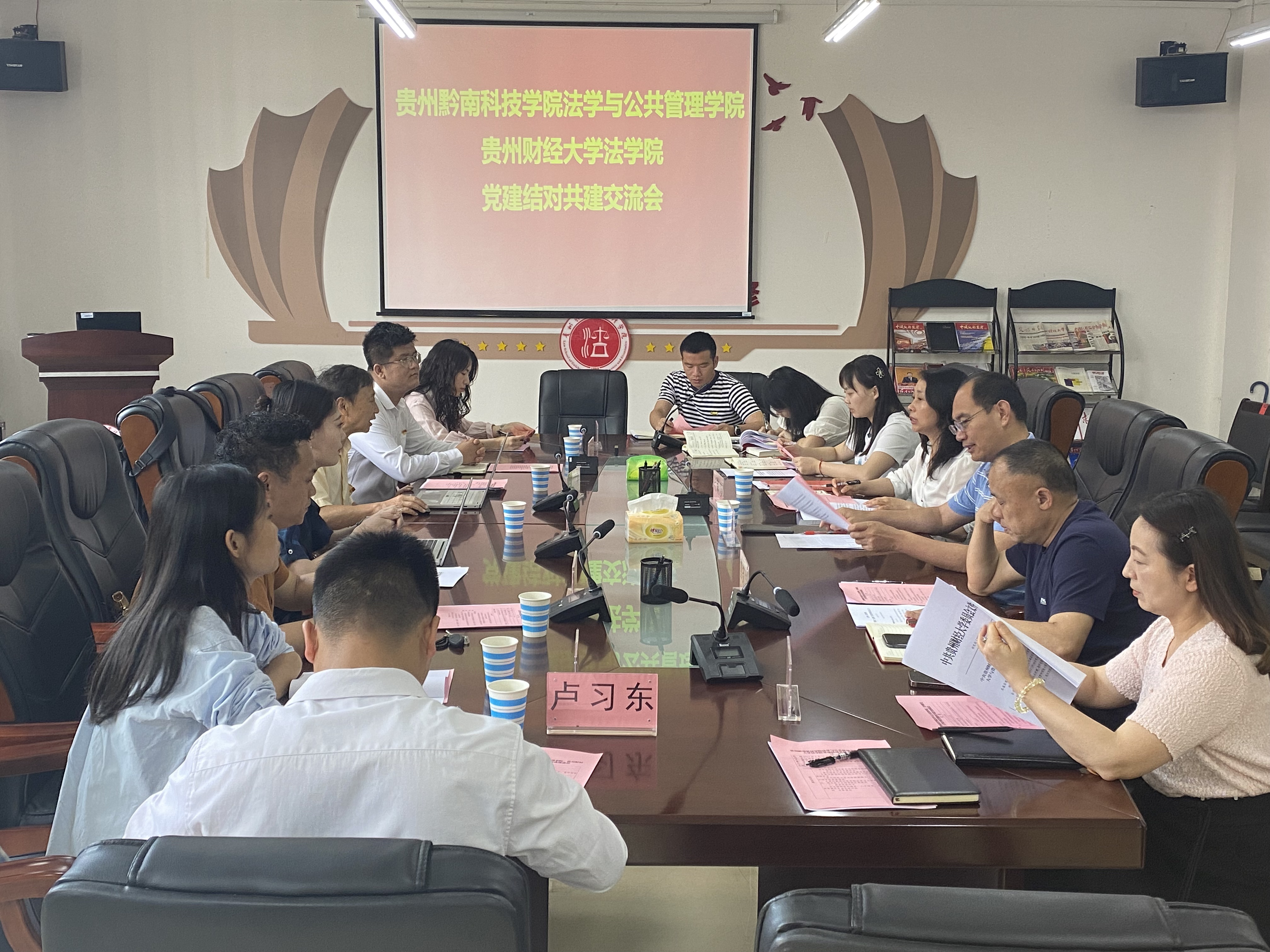 (法学院 向涛 报道|摄影)为贯彻落实好《贵州财经大学与贵州黔南科技学院党建工作结对共建工作方案》,6月12日,法学院邀请贵州黔南科技学院法学与公共管理学院来我院开展党建结对共建交流座谈会。