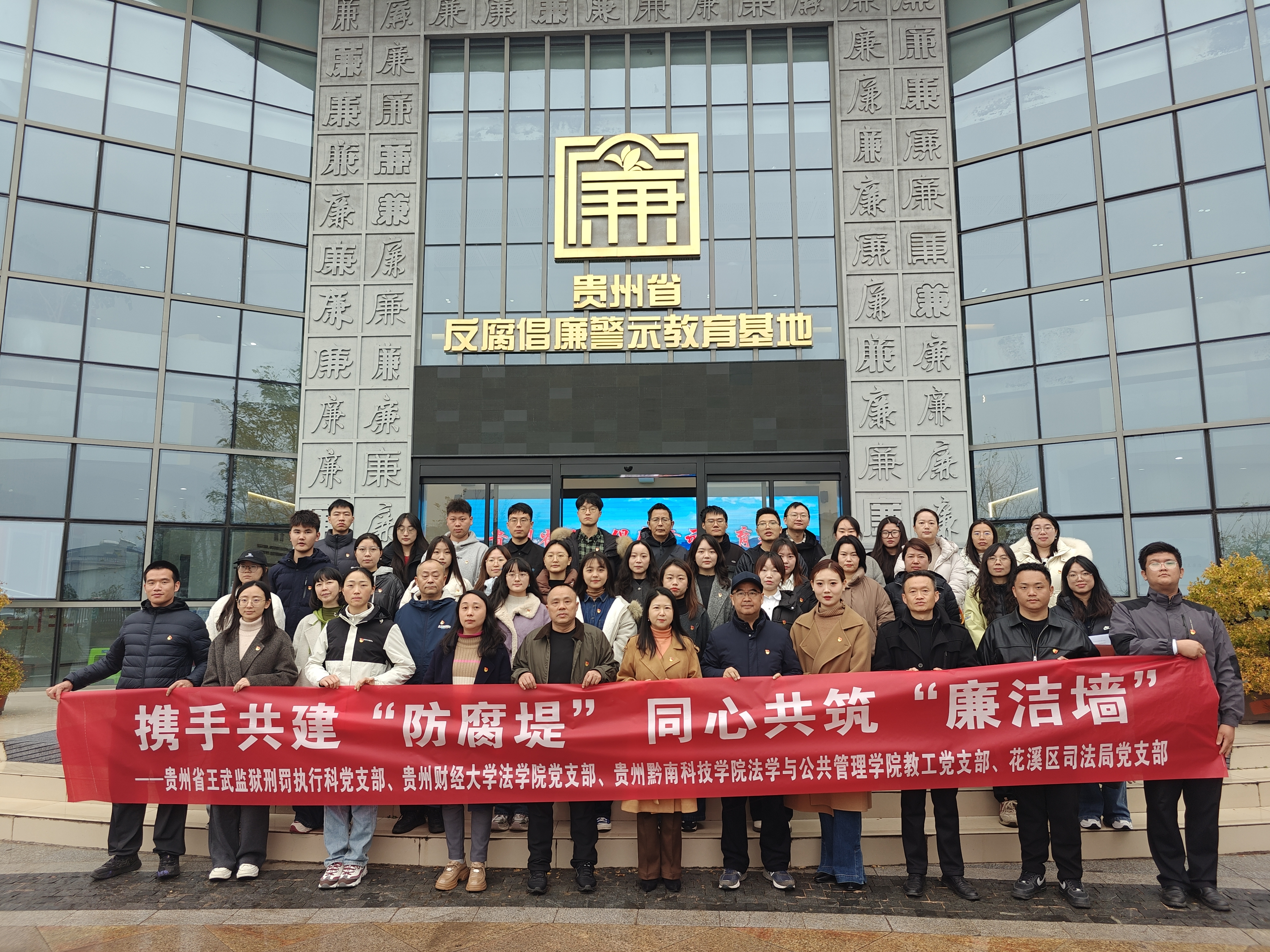 (刘杰 摄影)为深入学习贯彻党的二十届四中全会精神、安博安博首页_安博(中国)_安博(中国)法治思想和省委十三届八次全会精神,深化校监地党建与业务融合发展,在第八个“宪法宣传周”来临之际,12月2日,安博安博首页_安博(中国)_安博(中国)教工第一、第二党支部联合花溪区司法局党支部、贵州黔南科技学院法学与公共管理学院教工党支部、贵州省王武监狱刑法执行科党支部,共同开展“校监地联动促发展 警教结合育清风”主题党日活动。