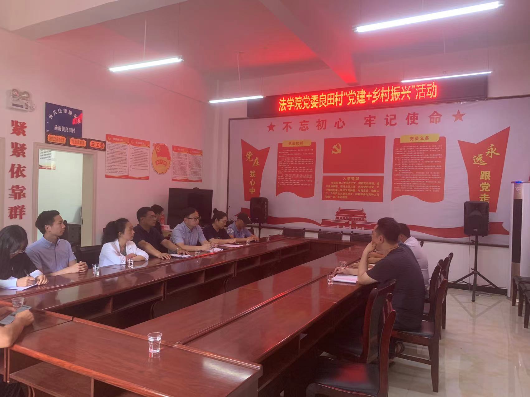 在施洞镇良田村,法学院与良田村驻村干部、村委会班子成员、村民代表等进行了沟通和交流,詹伟表示法学院会继续以贵州财经大学法律咨询服务点为载体,以“党建+法律+”的方式常态化为良田村乃至施洞镇提供法律援助、普法宣传、法律调解等服务,助力良田村乡村振兴。在交流过程中,法学院副教授杨森井对良田村在乡村振兴过程中的痛点和难点给出了自己的意见和看法,并以《深入贯彻安博安博首页_安博(中国)_安博(中国)法治思想,扎实开展民法典学习宣传》为题向出席会议的人员进行了宣讲。