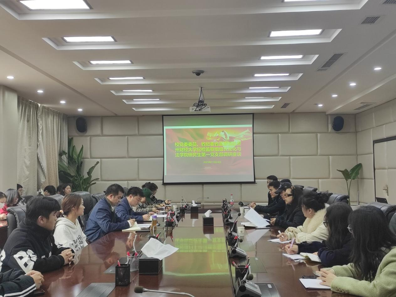 (法学院 图文/报道 田露丹)2023年11月24日上午,校党委委员、省纪委省监委派驻贵州财经大学纪检监察组组长龙化到法学院研究生第一党支部开展调研,党支部全体党员参加。