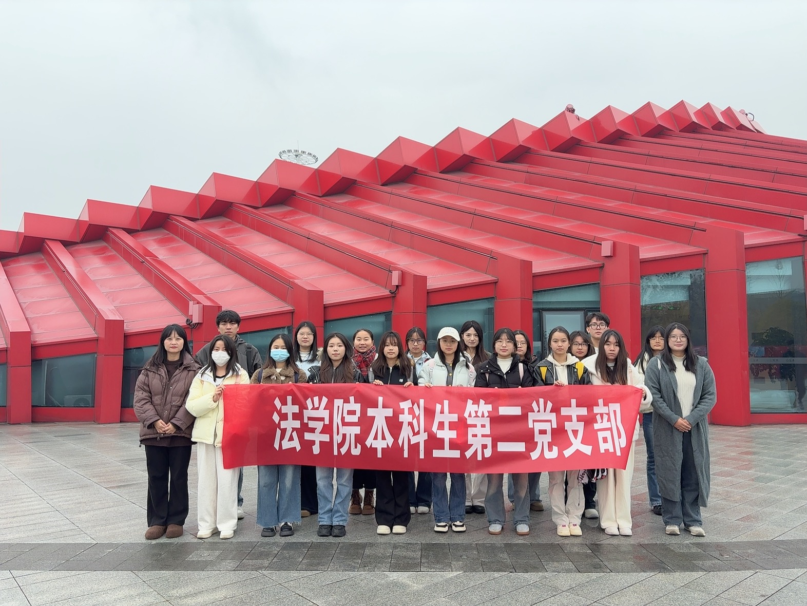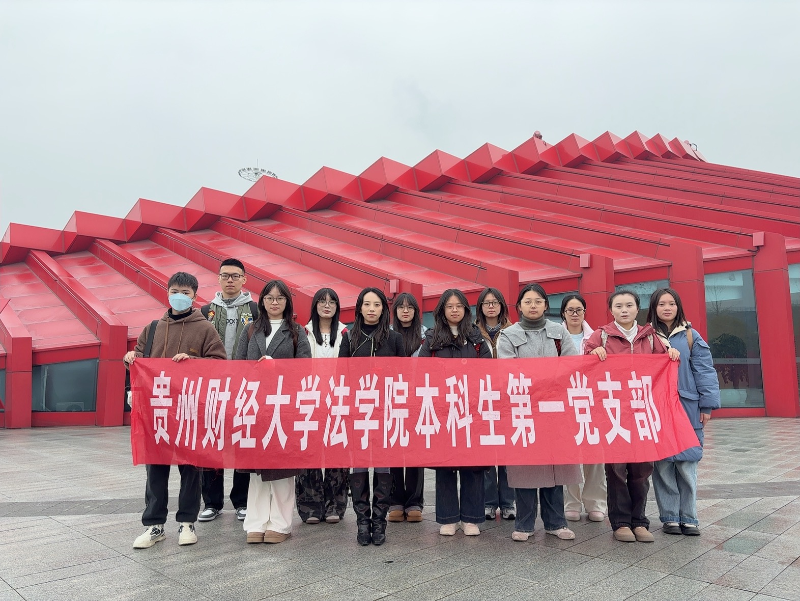 (法学院 刘灿 图文报道)理想信念是立党兴党之基,也是党员干部安身立命之本。2025年12月2日,为教育引导我院2025年新发展学生党员筑牢信仰之基、补足精神之钙、把稳思想之舵、弘扬长征精神,在院党委的统筹下,各学生党支部书记郭雪、刘美伶、杨兴莉、潘吉脉组织了法学院本科生第一党支部、本科生第二党支部、研究生第一党支部、研究生第二党支部共4个学生党支部60余名2025年新发展学生党员前往贵州长征文化数字艺术馆开展以“长征精神凝魂魄,党建引领耀初心“为主题的党史学习教育。