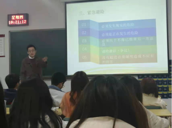许丹琳结合经济法发展历程,为同学们介绍了经济法不同学说,并解释了不同学说影响下经济法概念的变化缘由并为同学们阐释了经济法的核心概念——国家干预,分析了国家干预之所以存在的正当性、必要性;陆敏围绕不作为犯罪的三个成立条件以及通过列举大量的案例展开一系列讨论,促使同学们对不作为犯罪有关知识进而对基本法治精神进行积极地思考和探索;王霖博士给同学们讲授了紧急避险制度的特殊法理问题,并通过相关真实案例讲授了紧急避险制度的实践价值及背后的实质法理依据;钟一苇则向同学们介绍了亚里士多德、罗尔斯的正义论,让同学们认识到“法律是一门关于正义的学问”的观念。