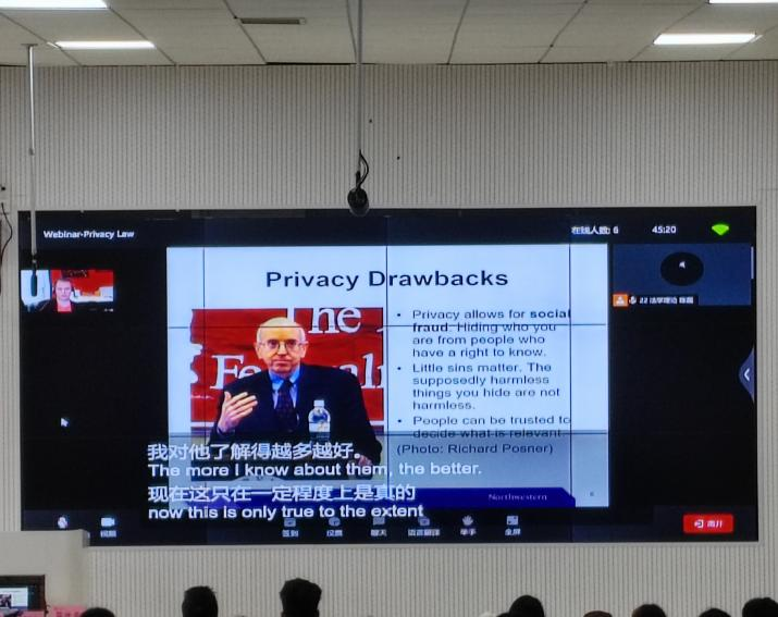 本次讲座采取了线上模式。Matthew Kugle教授从隐私的重要性及隐私的成本、探析美国普通法隐私权制度、相关部门法律法规和美国各州数据泄漏法律法规等五大模块为同学们展开了精彩的专题讲座。Matthew Kugle带领大家探讨关于数据泄露与数据安全标准、自动识别系统、社交网站、视频监控等近来饱受争议的话题,并探析美国普通法隐私权制度,回顾联邦贸易委员会的监管成为隐私保护的主要规制方式,阐释了隐私与数据安全法在当代社会的重要性。此外,Matthew Kugle教授还列举一系列关于消费者工作场所的监控与隐私安全相关案例,帮助同学们更好地理解大数据时代的隐私风险。