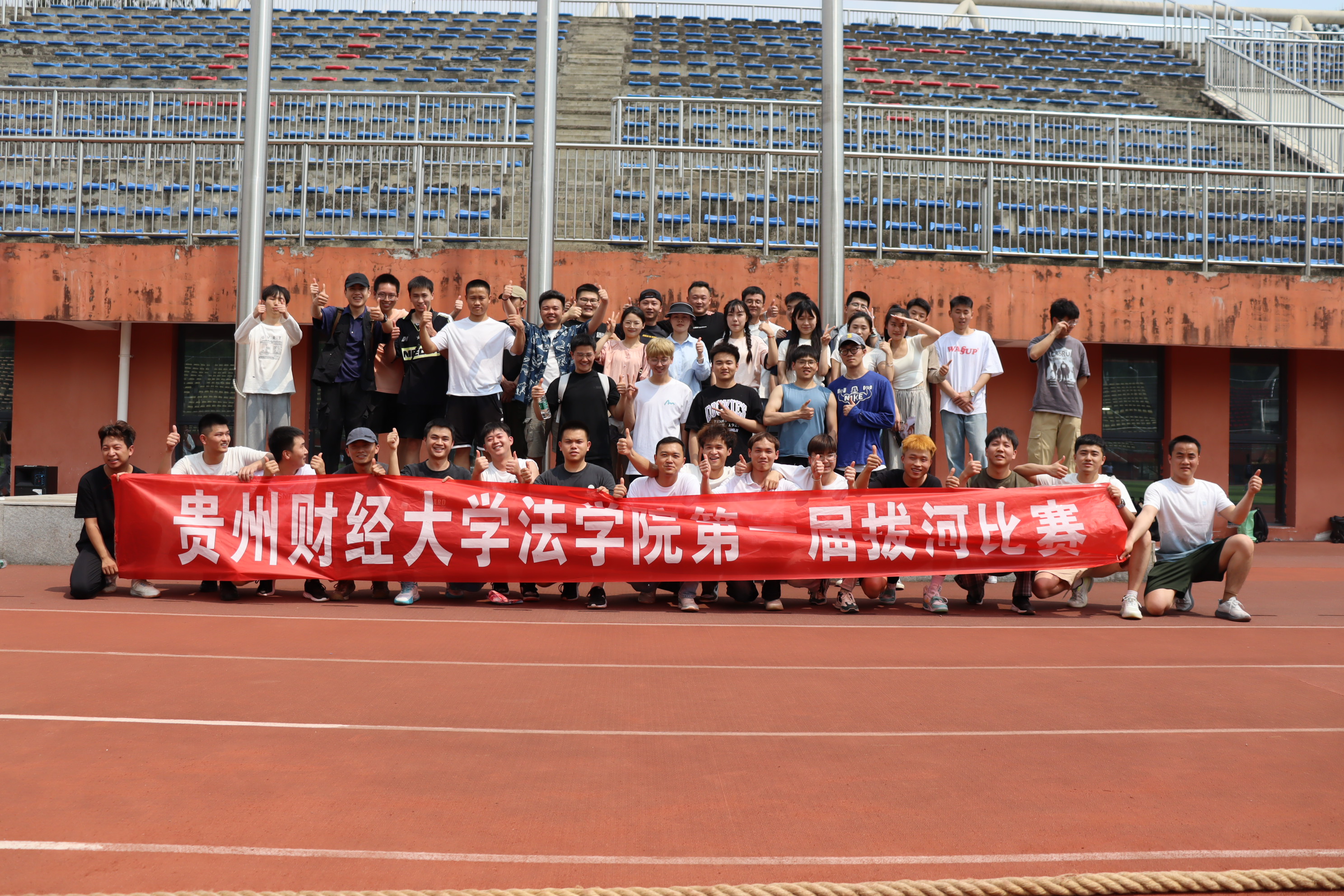 为发扬团队精神,增强班级凝聚力,促进各年级、班级之间的交流,我院于4月16号13点在西区北体育场举办法学院第一届拔河比赛。