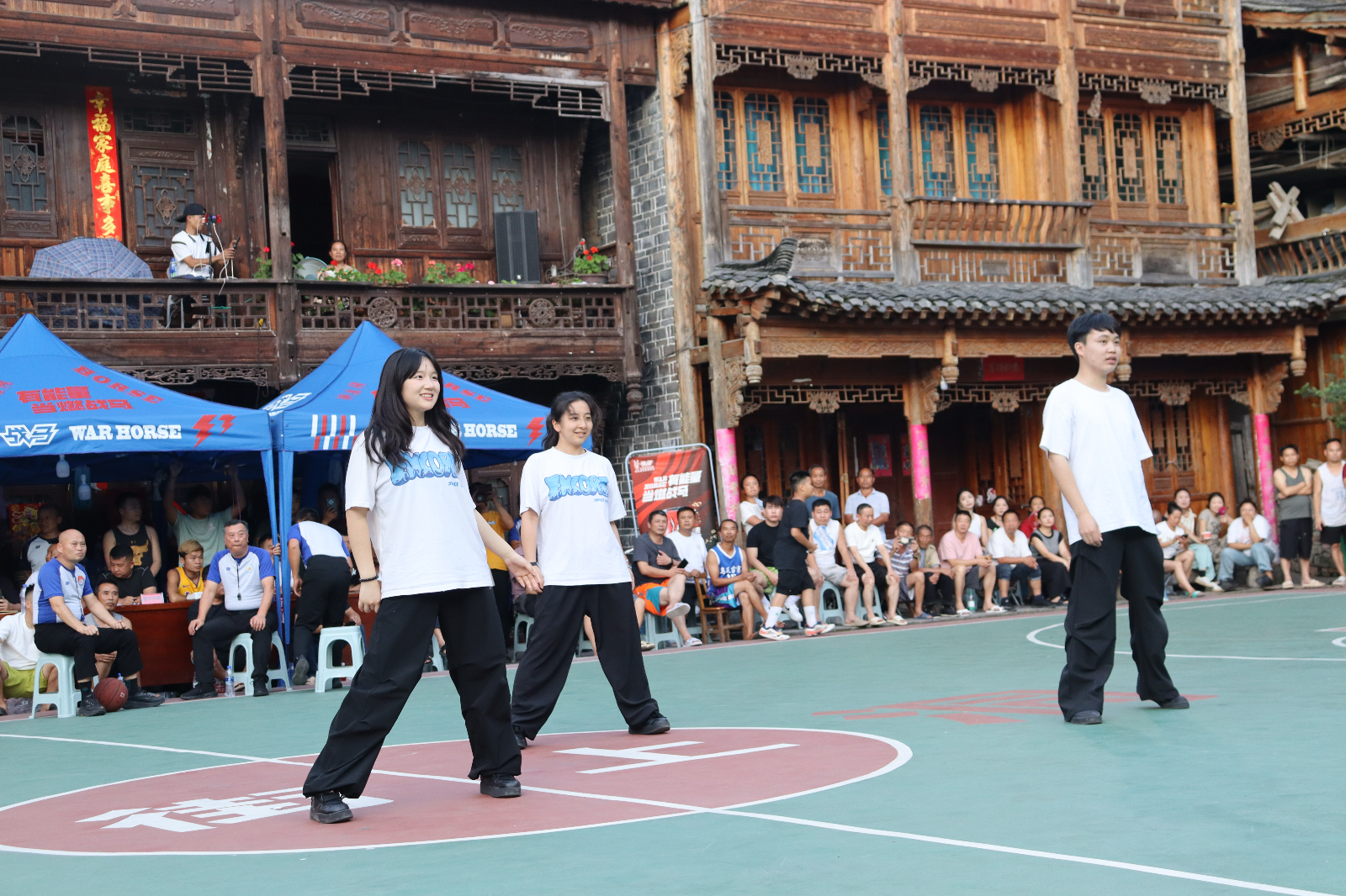 (法学院 唐贤睿 报道摄影)为响应乡村文化建设的号召,法学院 “三下乡” 实践团队走进台江县施洞镇,以一场活力四射的青春热舞为当地火爆的 “村超” 赛事增添了别样的光彩,在丰富乡村文化生活的同时,也展现了新时代青年学子的精神风貌。