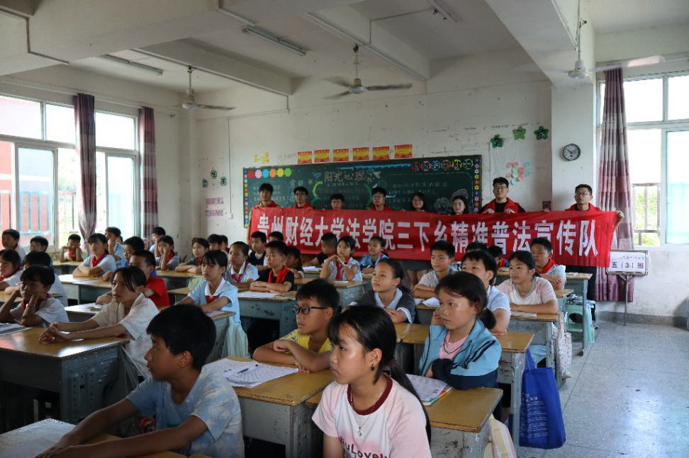 (法学院 饶子豪 报道摄影)为切实增强未成年人自我保护意识,筑牢校园安全防线,7月3日,法学院三下乡“精准普法”实践队、“青春法盾·无毒无艾”宣传队走进施洞镇小学,围绕《未成年人保护法》、禁毒防艾、防校园霸凌教育及女童保护四大主题,开展了一场生动的法治宣讲活动,为孩子们的成长撑起“法治保护伞”。
