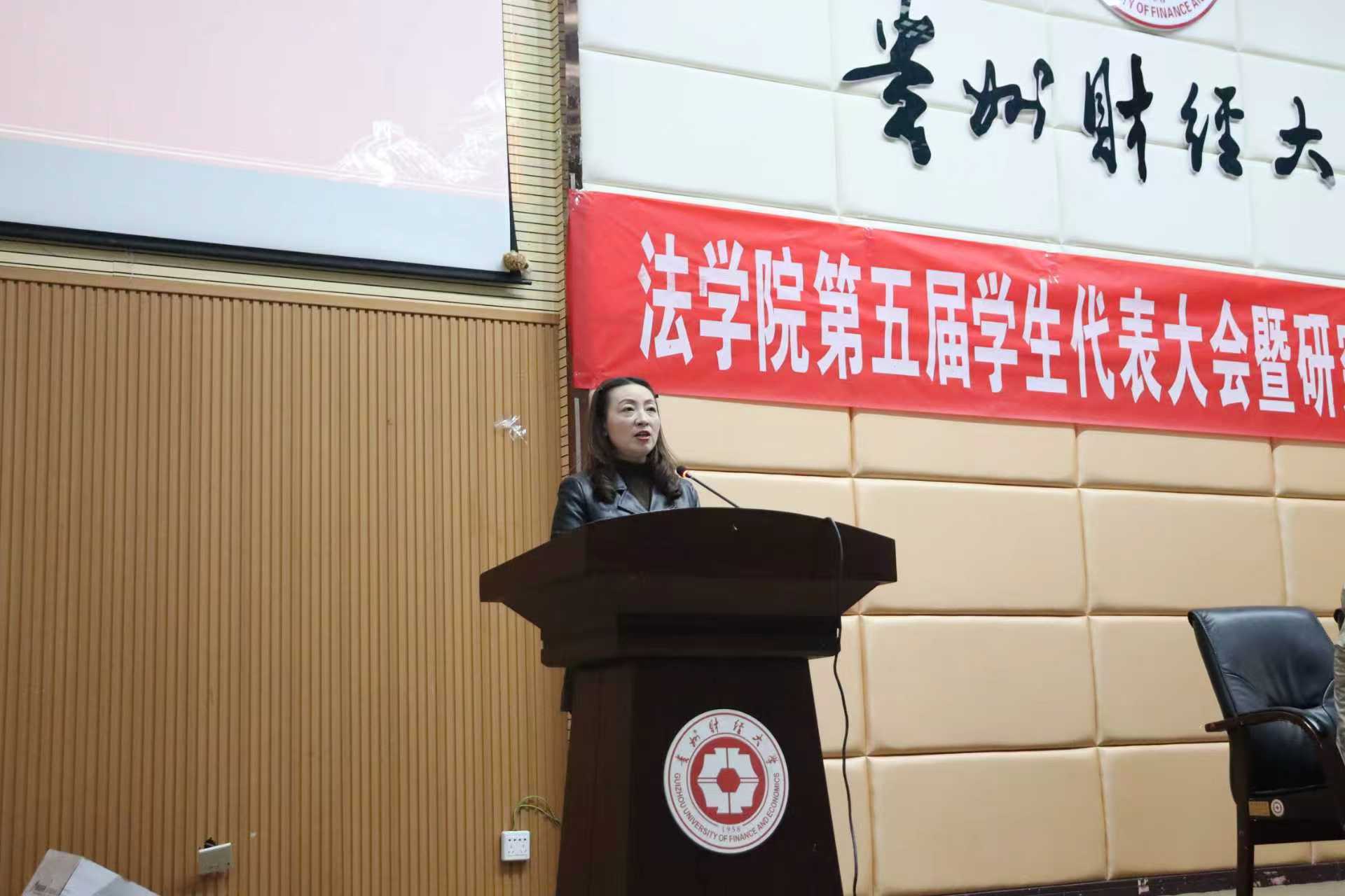 (法学院 石姗姗 报道|摄影 龙思齐)为全面落实立德树人根本任务,凝聚全院学生力量,共谋学院发展新篇章,11月11日,法学院第五届学生代表大会暨研究生代表大会在崇德楼报告厅隆重召开。法学院党委副书记彭华、校团委组织部部长赵红亮、法学院团委负责人刘美伶以及来自全院各年级的85名本科生代表、研究生代表参加了本次大会。