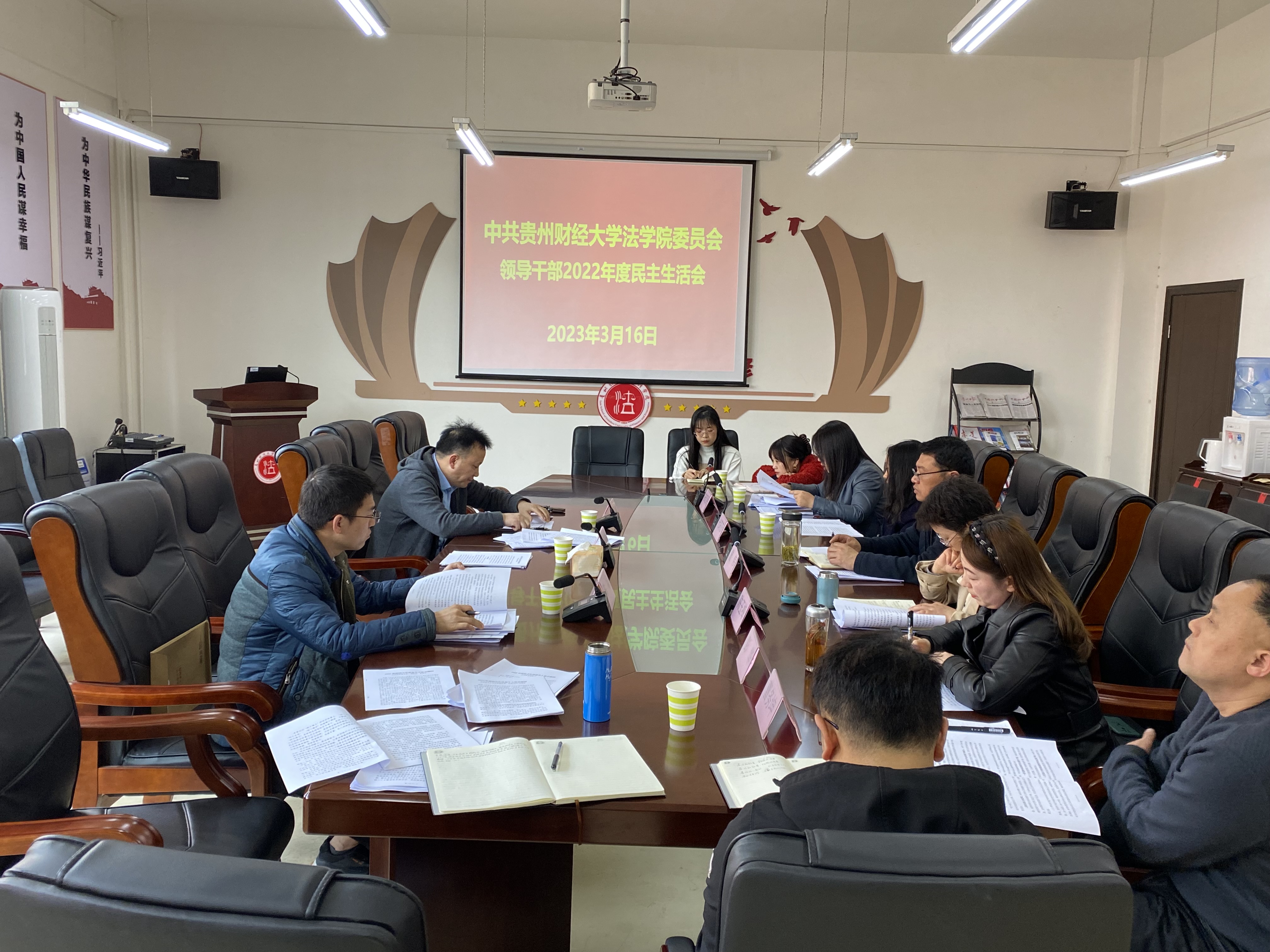 (法学院 图文/报道 向涛)3月16日,法学院党委在文德楼310会议室召开2022年度党员领导干部民主生活会。校党委委员、副校长李汉文到会指导,督导组组长陆仁茂、组员陈禄同志列席,学院全体处级党员领导干部参加会议,民主党派、党员和学生代表列席。学院党委书记詹伟主持会议。