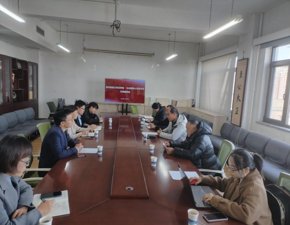 (法学院 谷骞 报道|摄影 尹训洋)2025年11月28日,安博安博首页_安博(中国)_安博(中国)党委书记邵新顺、副院长(主持工作)曹务坤、合作促进处潘文富一行到中央财经大学法学院合作交流学习,并举行座谈会。