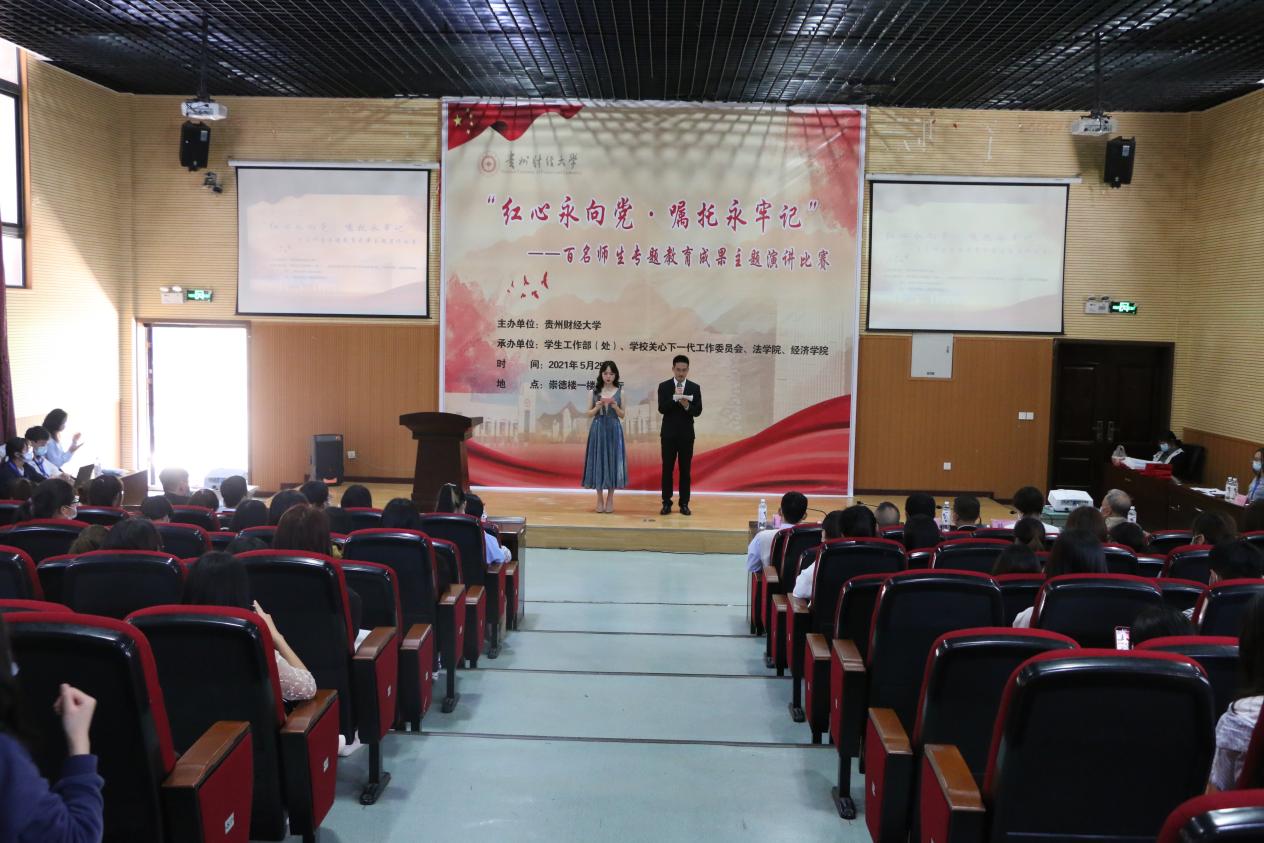 (法学院 程宇 报道|摄影 万沙 米钰)5月25日,安博安博首页_安博(中国)_安博(中国)在崇德楼报告厅举行“红心永向党 嘱托永牢记”百名师生专题教育成果演讲比赛。本次比赛由学生工作部(处)、学校关心下一代工作委员会、法学院、经济学院承办,贵州省演讲研究会副秘书长、中国春晖演讲团宣讲员熊书毅,贵州省职工读书演讲协会副秘书长、贵州省演讲研究会会员韩丹,学生工作部(处)副部(处)长陈晓勇,学生工作部(处)何祖星,关心下一代工作委员会史恩贤担任评委,法学院党委书记詹伟、各学院参赛选手以及全校师生共计200余人参加活动。