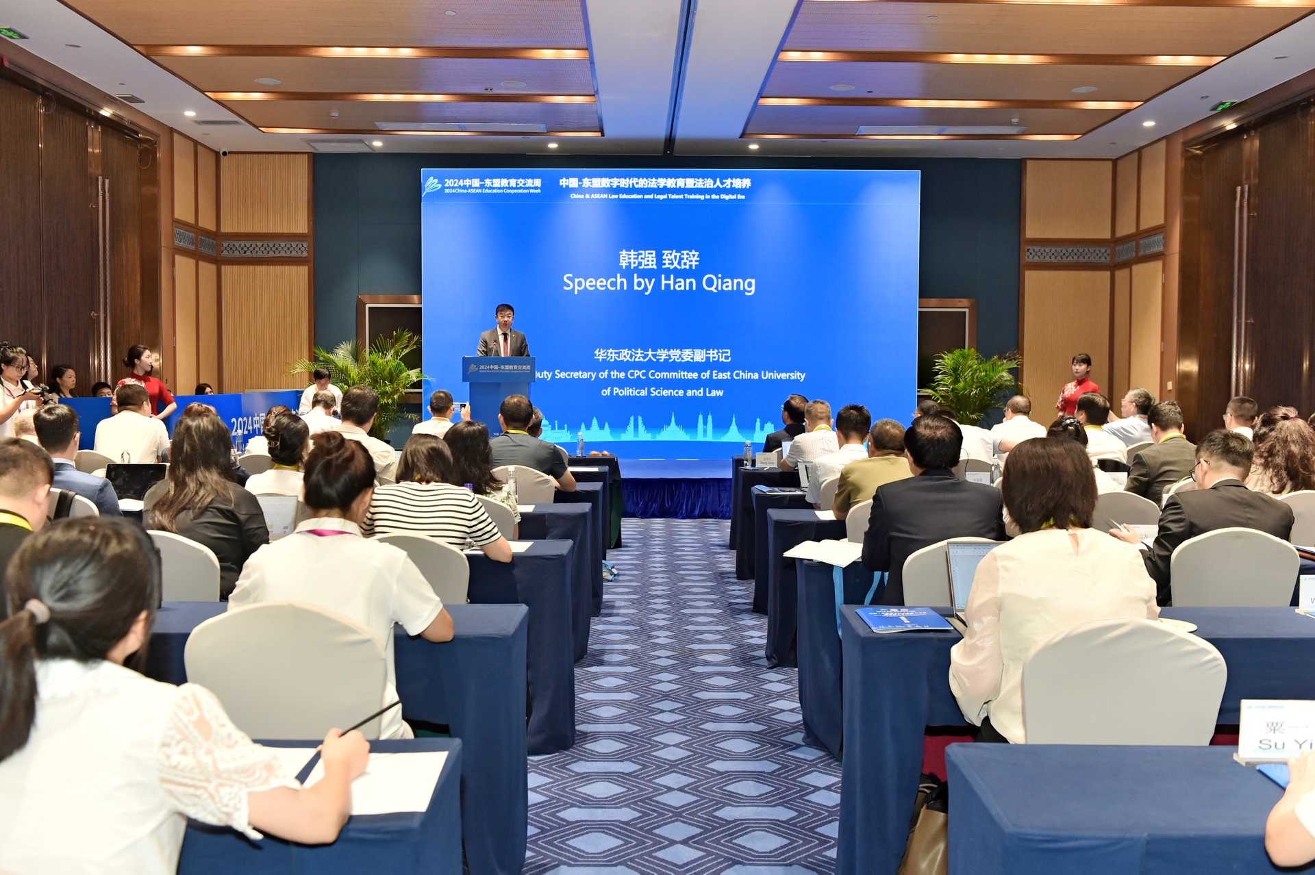 (法学院 谷骞/报道)8月24日,中国-东盟数字时代的法学教育暨法治人才培养论坛在贵阳东盟永久会址成功举行。此次论坛由华东政法大学、贵州财经大学主办,华东政法大学“丝路电商”法治研究中心、安博安博首页_安博(中国)_安博(中国)、贵州财经大学中国-东盟法学教育研究中心承办,对外经济贸易大学贵州研究院协办,北京市京师(贵阳)律师事务所大力支持。来自中国、新加坡、柬埔寨、孟加拉等东盟国家的近百位专家、学者共赴数字法治教育研究盛会。本次论坛积极响应“教育+科技”“教育+法治”等社会热点,以数字时代的法学教育与法治人才培养为主题,推进思想碰撞,凝聚思想共识。